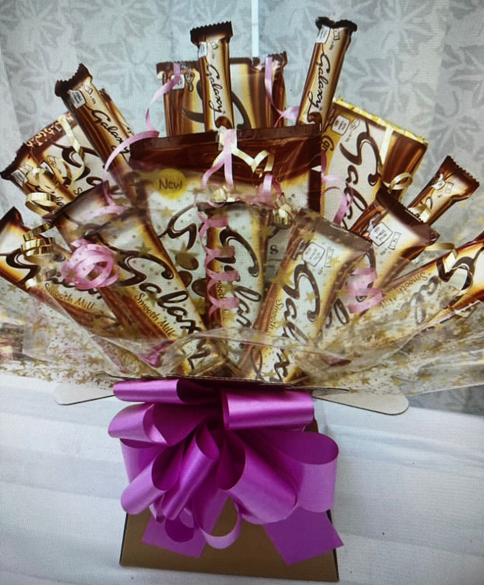 A smooth, indulgent bouquet filled with your favourite Galaxy bars, elegantly arranged and paired with a personalized or sentiments card. A luxurious treat for any special moment.