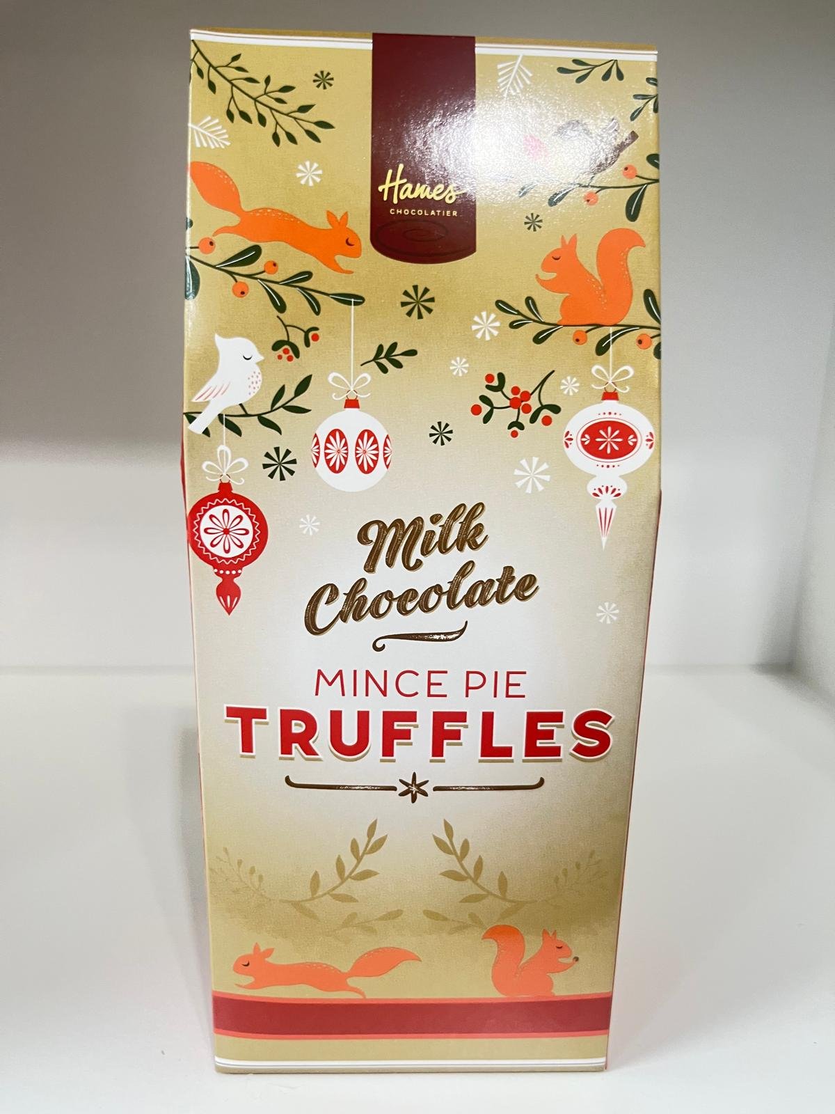 Celebrate the season with rich milk chocolate truffles filled with festive mince pie flavour. Smooth, indulgent, and perfect for holiday gifting or a seasonal treat.