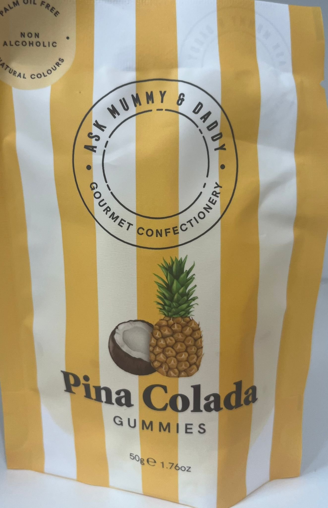 Enjoy the tropical taste of pina colada in these non-alcoholic, palm oil-free gummies. Sweet, fruity, and fun — 50g of chewy goodness in every pack. Best Before 12 Dec